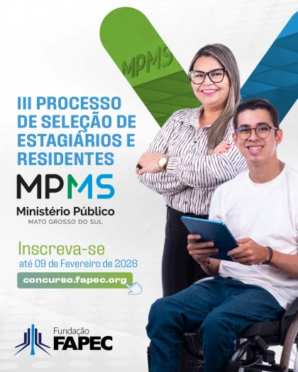 O Ministério Público do Estado de Mato Grosso do Sul está com inscrições abertas para o III Processo Seletivo de Estagiários e Residentes. A seleção é organizada pela Fundação de Apoio à Pesquisa, ao Ensino e à Cultura e segue as regras previstas em edital.