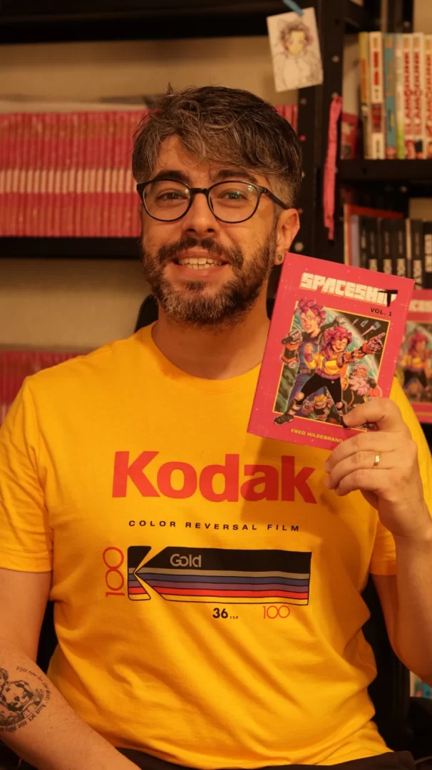 Sobre Fred Hildebrand – de Campo Grande – MS, é formado em Artes Visuais pela Universidade Federal de Mato Grosso do Sul, é quadrinista, ilustrador e professor de Mangá, trabalha com quadrinhos e ilustrações desde 2008. Participou do quadrinho independente Patre Primordium (2009-2012), como artista e criação. Desenhou dois capítulos do quadrinho Nanquim Descartável (2011), do roteirista Daniel Esteves. Fez os desenhos para o título: Os Desviantes (2022), no Almanaque Guará, revista mensal da editora carioca, Universo Guará. É responsável por toda a arte da web comic Homem – Grilo, do escritor e roteirista Cadu Simões. Spaceshit é o primeiro trabalho autoral em que toda a produção é desenvolvida por ele. É vencedor, junto com o Cadu Simões,  no 35° e 37° Troféu HQMIX, na categoria web quadrinhos com o título, Homem-Grilo.